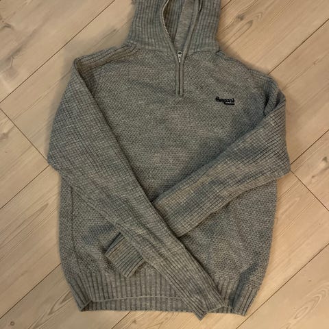 Peak Performance genser i størrelse S for herre. Genseren er grå og laget av bomull. Den har rund hals og ribbestrikkede mansjetter.