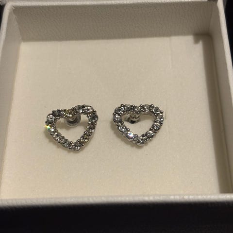 Fin ørepynt for hull i ørene. Ørepynt med hjerte anheng der det står Love. Kan sendes for 31 kroner som brev eller for 73 kroner med sporing, du velger.. kan hentes.