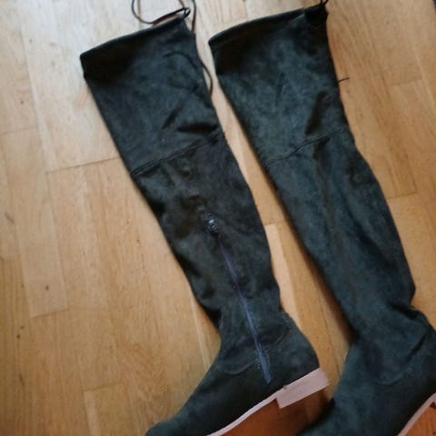 Nydelig sorte støvletter i ekte skinn. Går til kneet, og kan brettes øverst om man ønsker det. Meget behagelige på foten, mykt skinn og gode å gå i.