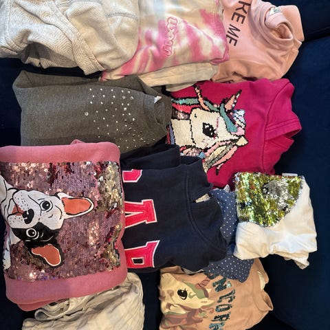 19plagg, 4 bukser, 2 shorts, 4 kortermet,5 langarmet,4kjoler