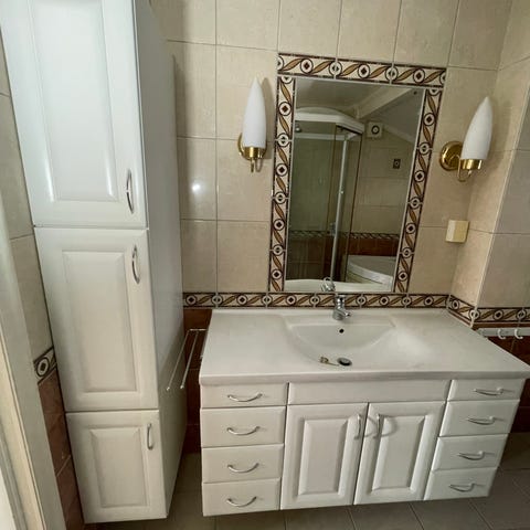 Gustavsberg Speil med dusjarmatur og baderomsskap hvit