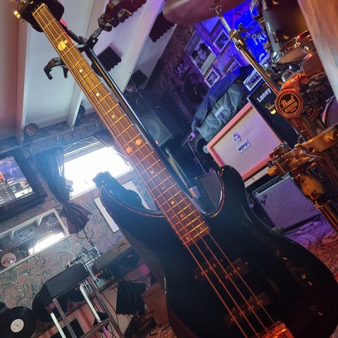 Svært komfortabel og vellydende Pbass fra Sire. Byttet ut min Mexico-Fender for denne uten å nøle. Lys og fin sunburst.