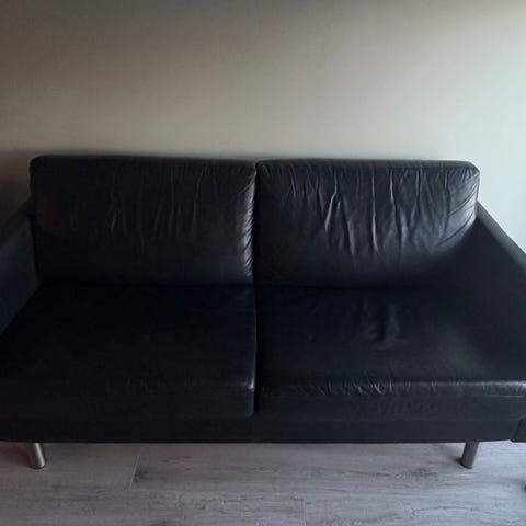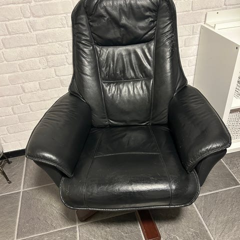 Pent brukt lenestol / loungestol i svart skinnimitasjon.