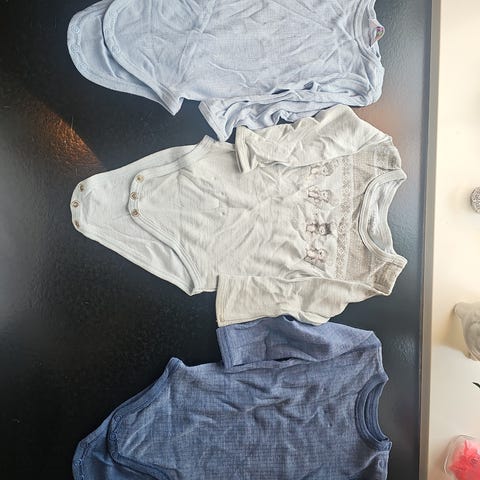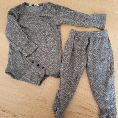 Joha Body med lange ermer laget av merinoull i blå farge, med bukse til. Størrelse 74