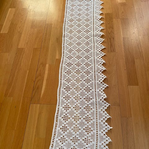 Fin, gammel heklet løper, nyvasket.