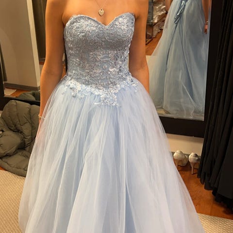 Leier ut denne nydelige champagne fargede ballkjolen fra Tina Ritzi. Kjolen er i str S, men kan passe en fra XS-M på grunn av snøring i ryggen. Lengden er ca 170-180+-, kommer Ann på hvilke sko du bruker til. Må hentes og kan prøves på hos meg.🌸