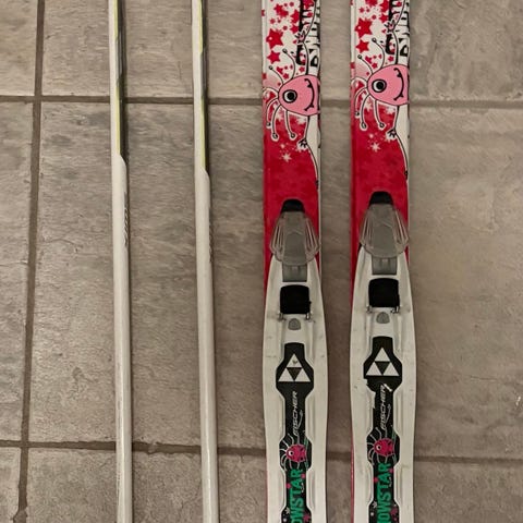Fisher snowstar smørefrie ski og skistaver. Pent brukt.