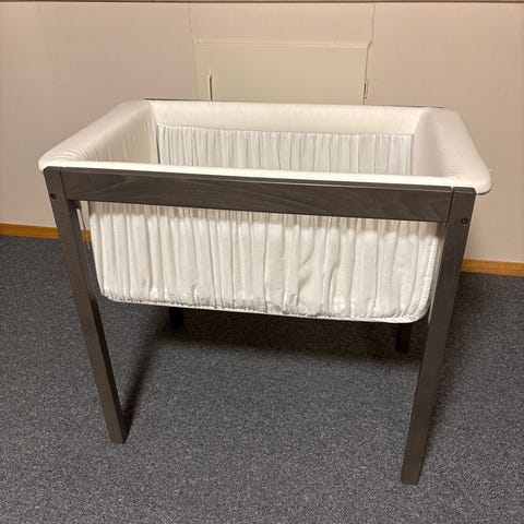 IKEA sprinkelseng for barn. Designet for å gi en trygg soveplass for små barn. Madrass, beskyttelse og dyne kan medfølge men trenger en vask.