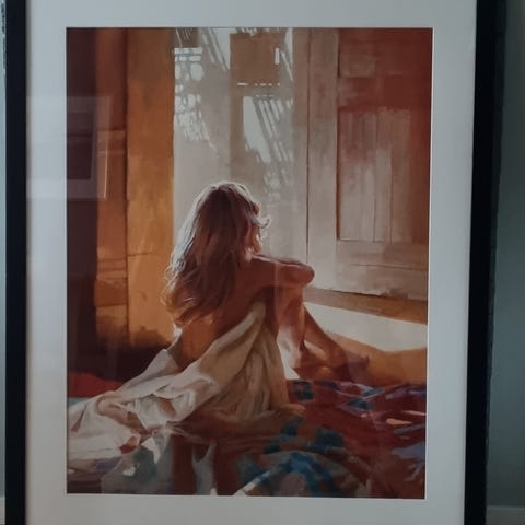 Linosnitt, nummerert 34 av 50 eksemplarer. Str 22x30 cm. Signert av kunstneren.