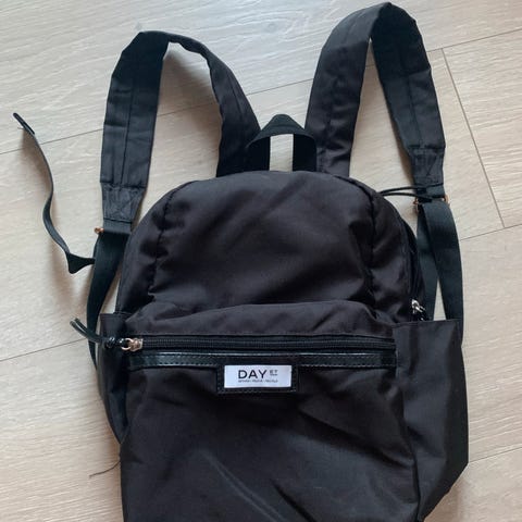 Svart liten ryggsekk i merket Day ET, i god stand.