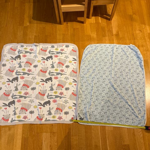 4 babytepper. 1 i fleece og 3 i bomull. Godt brukt men fortsatt mye bruk igjen. Har en del flekker, selges derfor billig. Selges samlet.
