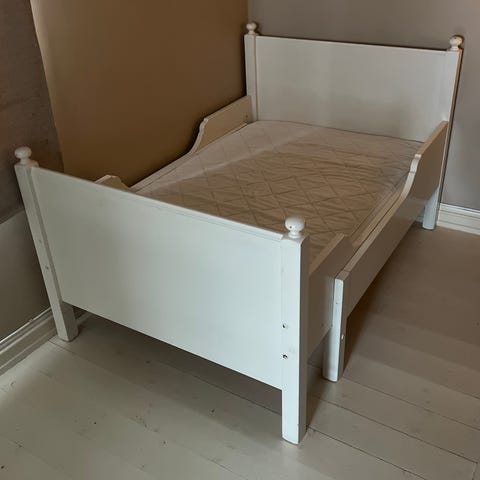 Størrelse 80x200, men kan enkelt gjøres om til dobbeltseng.