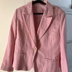 Lekker sommer blazer i behagelig stoff. Uforet og lett. Brystlomme m pynt. To lommer i front , i nedkant. Nett modell i en nydelig støvrosa farge. Ny pris 4000.