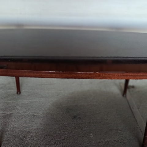 Godt brukt bord, så noen bruksmerker er det. Ene beinet er løst, men bordet står stødig (kan fikses med superlim). Veldig fint bord som førstegangs møbel, eller pynt.