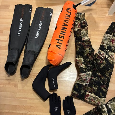 Sønnen selge fridykking utstyret sitt. Kjøpt nytt av han i 2023 lite brukt. Her har du alt du trenger for å starte med undervanns jakt. Størrelse: drakt L 7mm, svømmeføtter 42-44, hansker L, sokker L 7mm og M 5mm. Harpun ikke brukt.