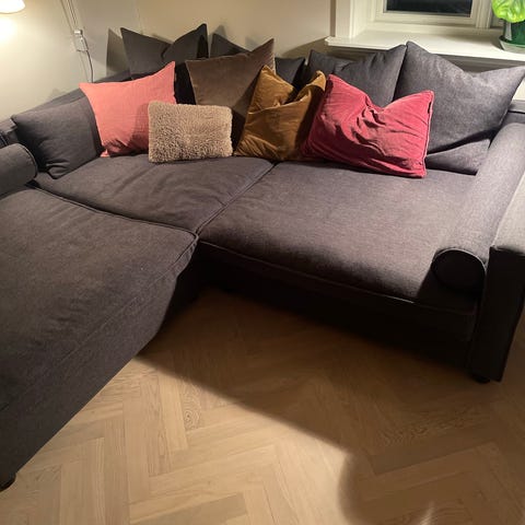 Selger en grå hjørnesofa fra Bolia i grei stand (se bilder)