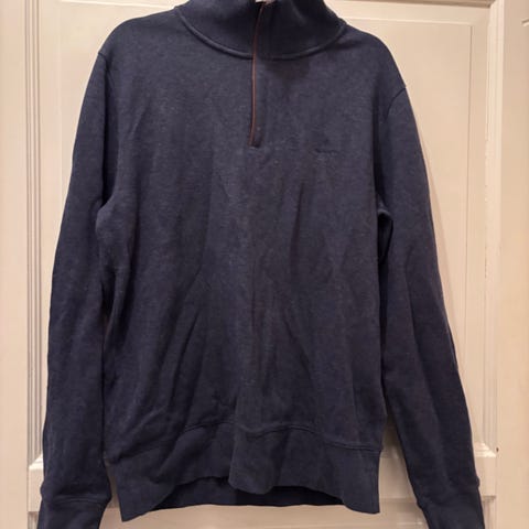 GANT genser i størrelse M for herre, laget av bomull. Genseren er blå og har en glidelås i halsen.