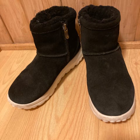 UGG barn vintersko i størrelse 37, brun farge. Skoene har en isolerende og varm fôr, egnet for kalde værforhold. Yttersålen er designet for godt grep på ulike underlag. Passer for jenter. Str som 36 tenker jeg .