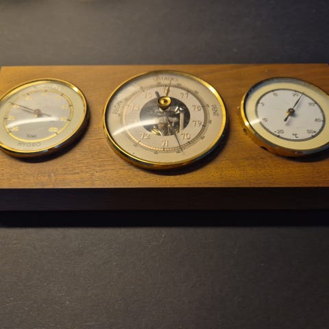 Vegg barometer med termometer og hygrometer – ekte treverk, West Germany