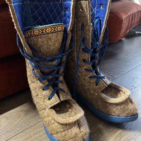• Laget i tett tovet ull/filt – gir god varme og puster naturlig