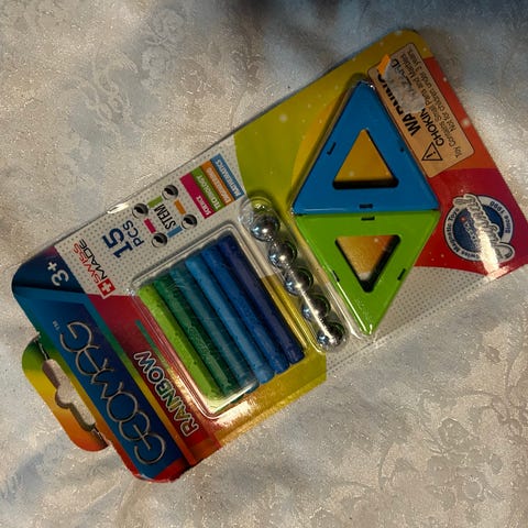 Dette er magnetiske byggeklosser, sannsynligvis av merket Magformers.