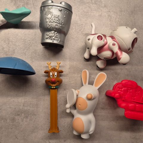 Settet inneholder flere dukker i ulike farger og stiler, samt oppbevaringskuler og andre lekedeler.