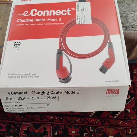 Fast ladekabel er 6.5m type 2 front
