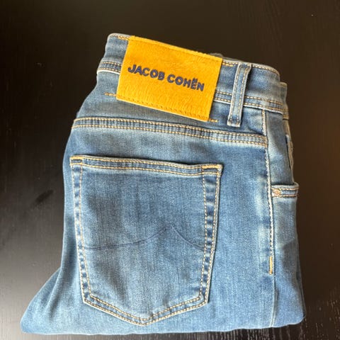 Jacob Cohën denim jeans i blå farge, størrelse W34 og L 30/28 for herre. Laget av denim materiale. Pent brukt, i veldig god stand.