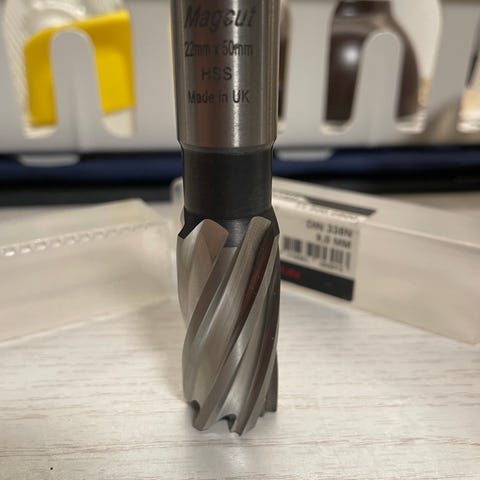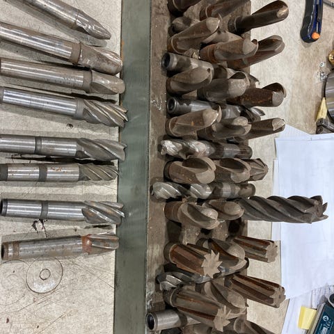 53stk, noen skarpe, noen mindre skarpe, men de fleste er brukbare og alle kan slipes... M10 trekkgjenge i enden, gjennomsnittlig diameter er Ø18. Veier 11kg.