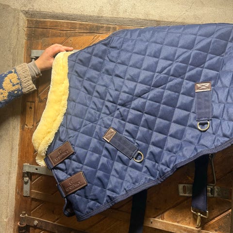 Rambo Original Regndekken med 100g fôr i navy og orange farger. Dekkenet er laget av 1000D ytterstoff i ballistisk nylon, som er vindtett og vanntett. Det har reflekser, stor haleflapp, og er kompatibelt med Horsewares liner-system. Dekkenet har avtagbare gjorder og halereim, antibakteriell lining, og patentert V-front lukking. Rambo gir 3 års garanti på vanntetthet og pusteevne. Dekkenet har rustfrie spenner og kan festes på hals som kan kjøpes utenom.