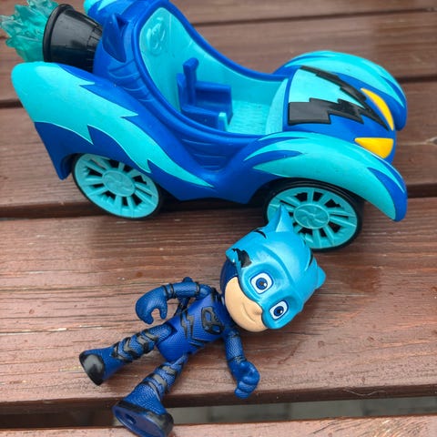 PAW Patroller for to biler og plass på utsiden for ytterligere fire PAW Patrol-biler. Trykk på knappen på siden av PAW Patroller, kjøretøyets sider vender opp og avslører to bæreraketter. Trekk i spaken for å plassere bærerakettene, og trykk på startknappene for å sende kjøretøyene dine til redning. Trykk deretter på knappen på toppen av PAW Patroller for å høre lydeffekter rett fra showet.