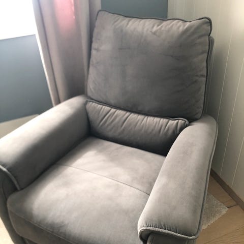 Pent brukt ammestol til salg. Både stol og fotskammel har gyngefunksjon. Utrolig komfortabel (jeg har tilbrakt timevis i denne stolen).