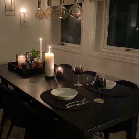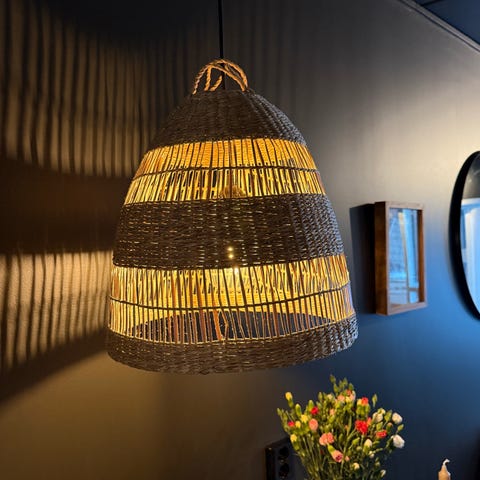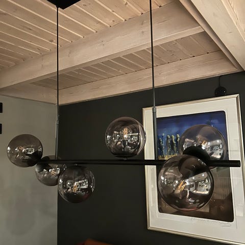 Selvkomponert taklampe med glasskupler fra IKEA selges. Takfeste, ledninger og en lyspære (som virker) følger med.