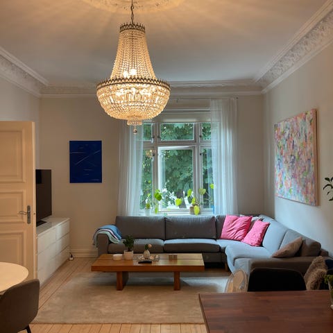 Ingen skader, flekker, bruksmerker, den er så god som ny. Vi selger pga flytting og at denne dessverre ikke passer i vår nye stue.