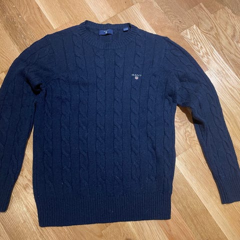 GANT ullgenser for barn i størrelse 146- 152, 11-12år. Genseren er laget av 100% lammeull og er blå med stripemønster. Selges kr 200,-. Kan sendes mot porto.