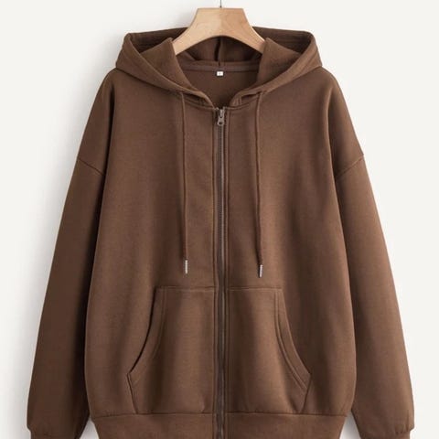 Shein hettegenser i størrelse XS for jenter, laget av ullmateriale. Genseren har hette og er beige i fargen. Passer som et varmt og komfortabelt plagg.