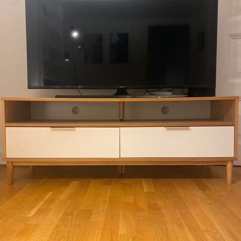Platetoppen er noe buet grunnet vekten fra TV. Dette merkes ikke med mindre man ser etter. Bilder oppdateres.