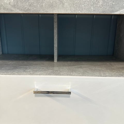 Selve benken er Bestå, og dørene er Timmerviken. Dørene kan enkelt byttes ut om ønskelig.
