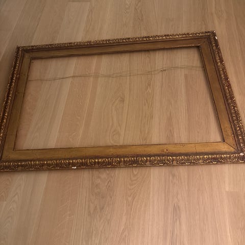 Dekorativ ramme i tre med gullfarget finish. Rammen har et klassisk design og passer til bilder eller kunstverk. Egnet for innramming av fotografier, plakåater eller malerier. 4 dtk + noen mindre