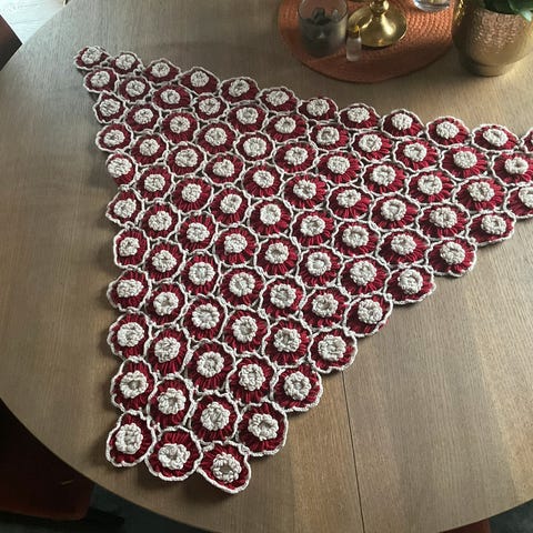 Heklet sjal i alpakka ull/akryl. Størrelse 180 cm bredt og 100 cm høyt. Kjøper betaler frakt med Postnord kr 69