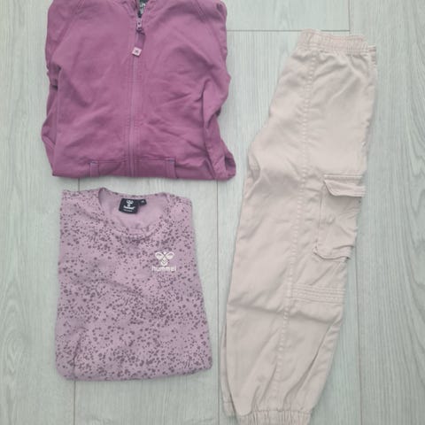 Den rosa kjolen er merket 8, men den er liten. Jeg mener den tilsvarer 116/122.