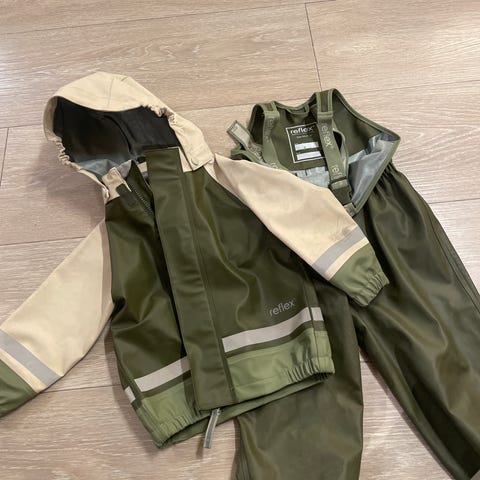 Svart, slitesterk overgangsbukse med justerbar sele. Str. 92 (passer ca. 2 år. God stand, brukt men velholdt. Perfekt for våte og kalde vår/høst dager