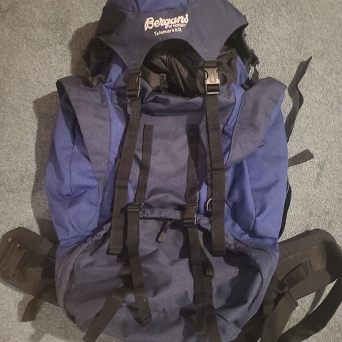 Bergans Telemark 60 liter som er nesten ikke brukt. Meget pen og praktisk sekk. Farge blå