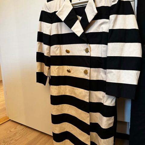 Malene Birger Robannas vattert jakke med belte. Fargen er sort og materialet viskose. Pent brukt, som ny. Står ikke noen størrelse i den, men passer meg som vanligvis bruker str 38.