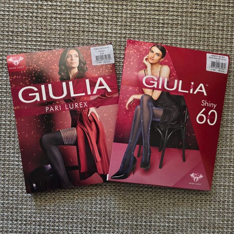 Selger to Gabriella strømpebukser, begge i størrelse S. Klassiske, sorte fashion-tights med dekorativ mønstring. Pris oppgitt er for begge.