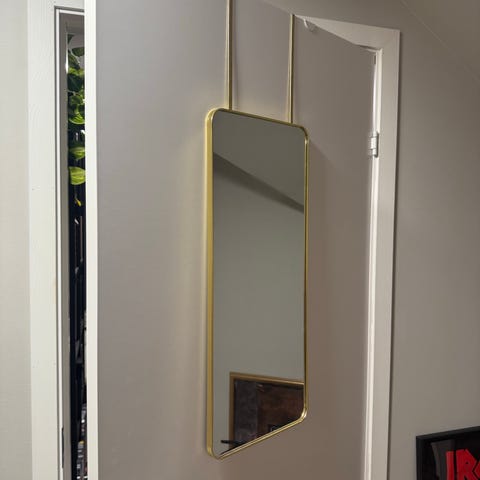 B 48cm og H 60cm . Egnet for bruk som veggspeil eller frittstående speil i ulike rom.