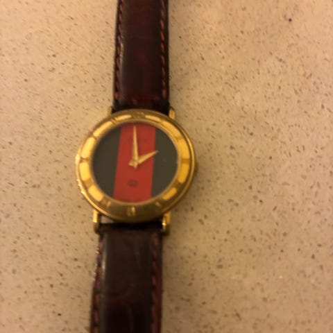 1. Fin retro (den oval) Gucci til en hyggelig pris! Fungerer ikke for øyeblikket – trenger nytt batteri og rengjøring/polering. Perfekt som retro-accessoire eller til oppussing!