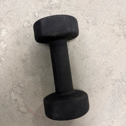 Ukjent merke 10 kg vektplate i blått stål. Passer til standard vektstenger med sentralt hull for montering. Brukt til styrketrening og vektløfting.