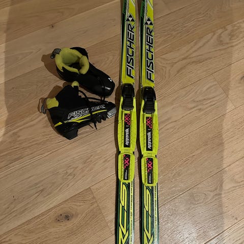 Langrennski til barn. Smørefri barneski fra Madshus med Rottefellabinding. 90cm lange og fine som barnets første ski.