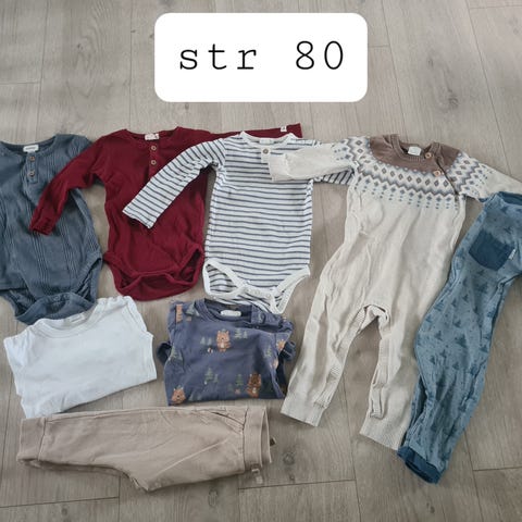 Størrelse 74/80 og størrelse 80. Altså alt passer i strørrelse 80.